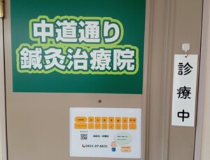 玄関のドアに新しく治療院の看板をつけました。